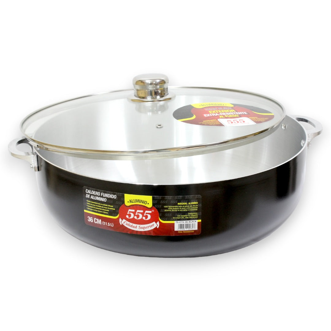 CALDERO C/TAPA VIDRIO 36CM NEGRO
