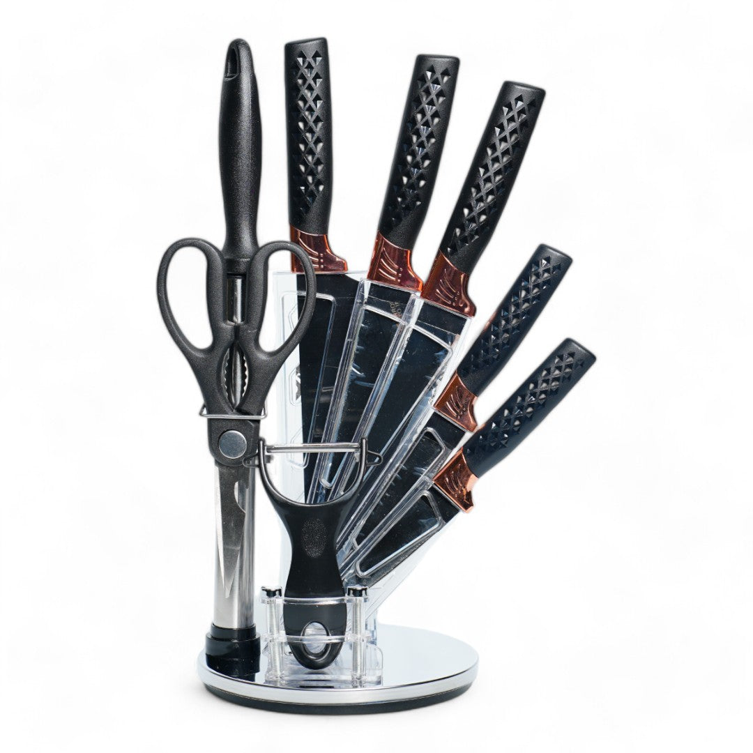 JUEGO DE CUCHILLO/TIJERA/PLEADOR 7 PZA C/BASE